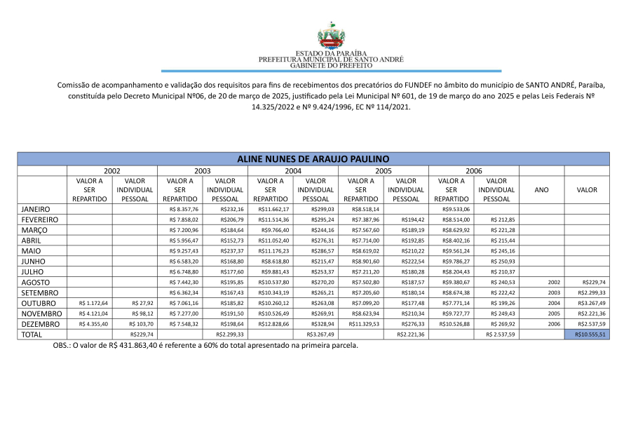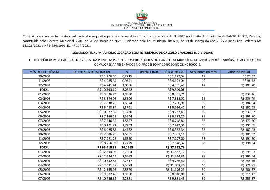 RESULTADO FINAL PARA HOMOLOGAÇÃO COM REFERÊNCIA DE CÁLCULO E VALORES INDIVIDUAIS