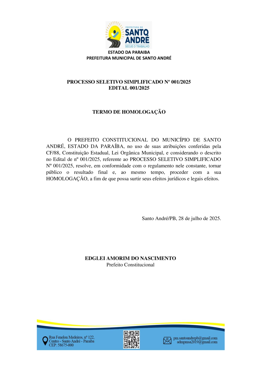 PROCESSO SELETIVO SIMPLIFICADO Nº 001/2025 – TERMO DE HOMOLOGAÇÃO