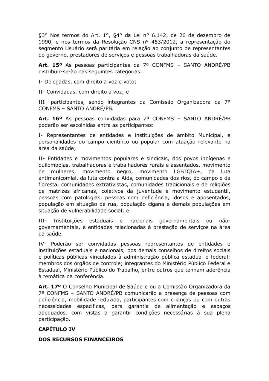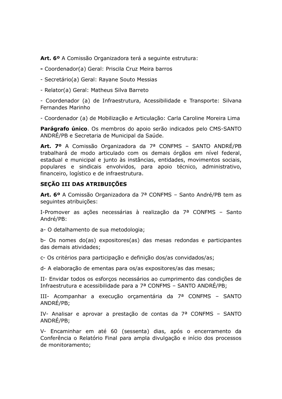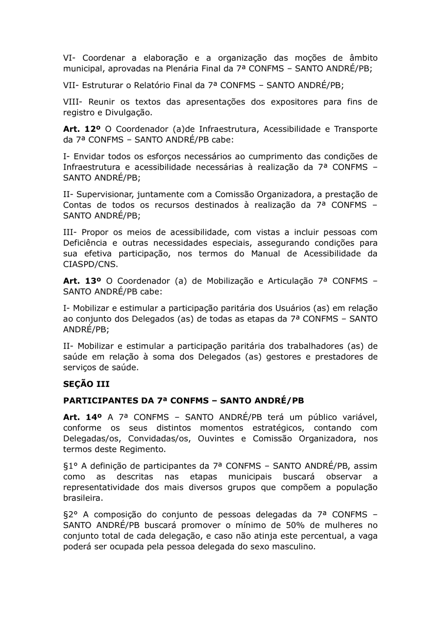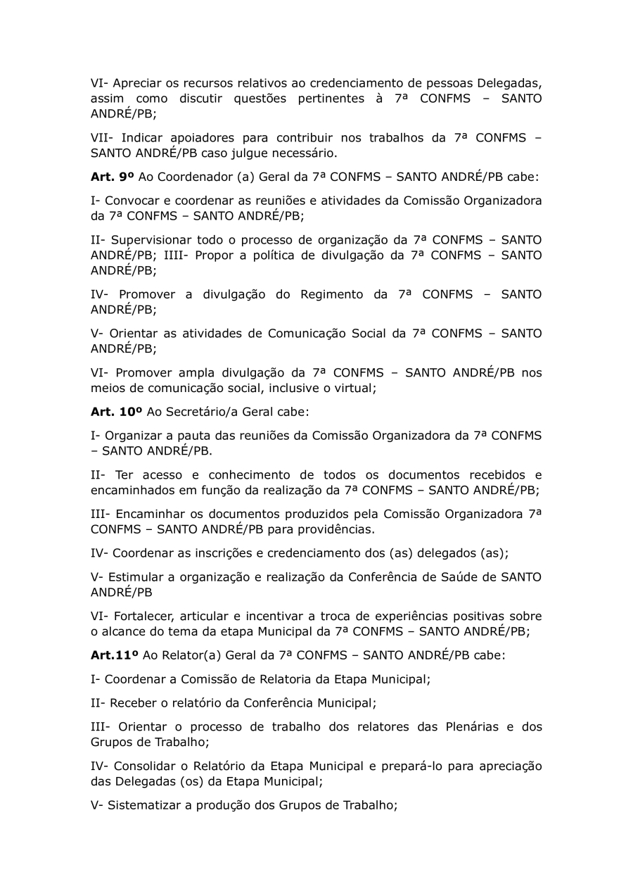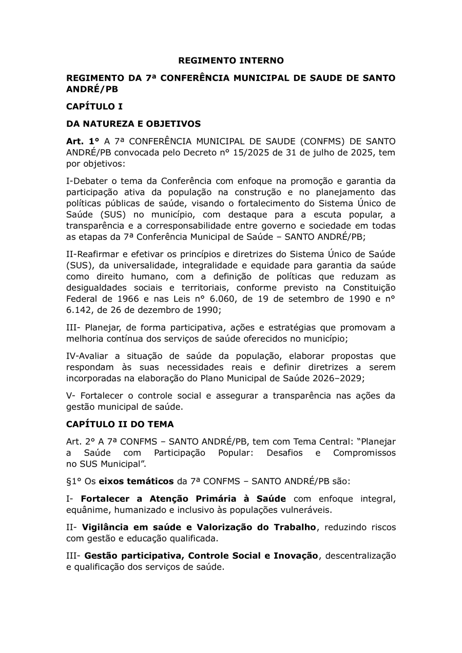 REGIMENTO DA 7ª CONFERÊNCIA MUNICIPAL DE SAUDE DE SANTO ANDRÉ/PB