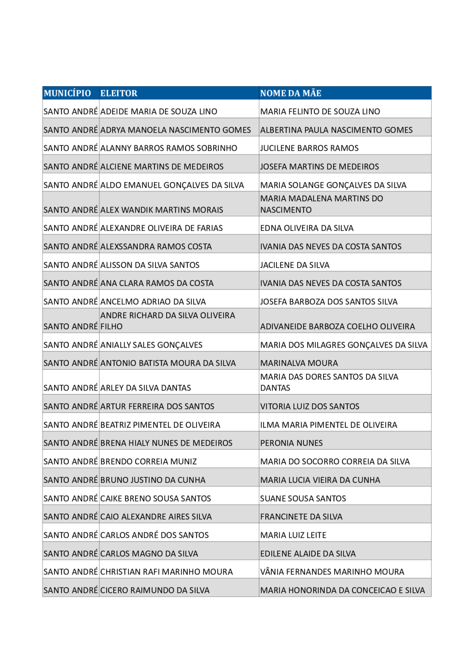A Prefeitura Municipal de Santo André informa aos cidadãos que possuem pendências na coleta de dados biométricos que devem comparecer ao atendimento especial que será realizado em parceria com a 56ª Zona Eleitoral de Juazeirinho/PB.