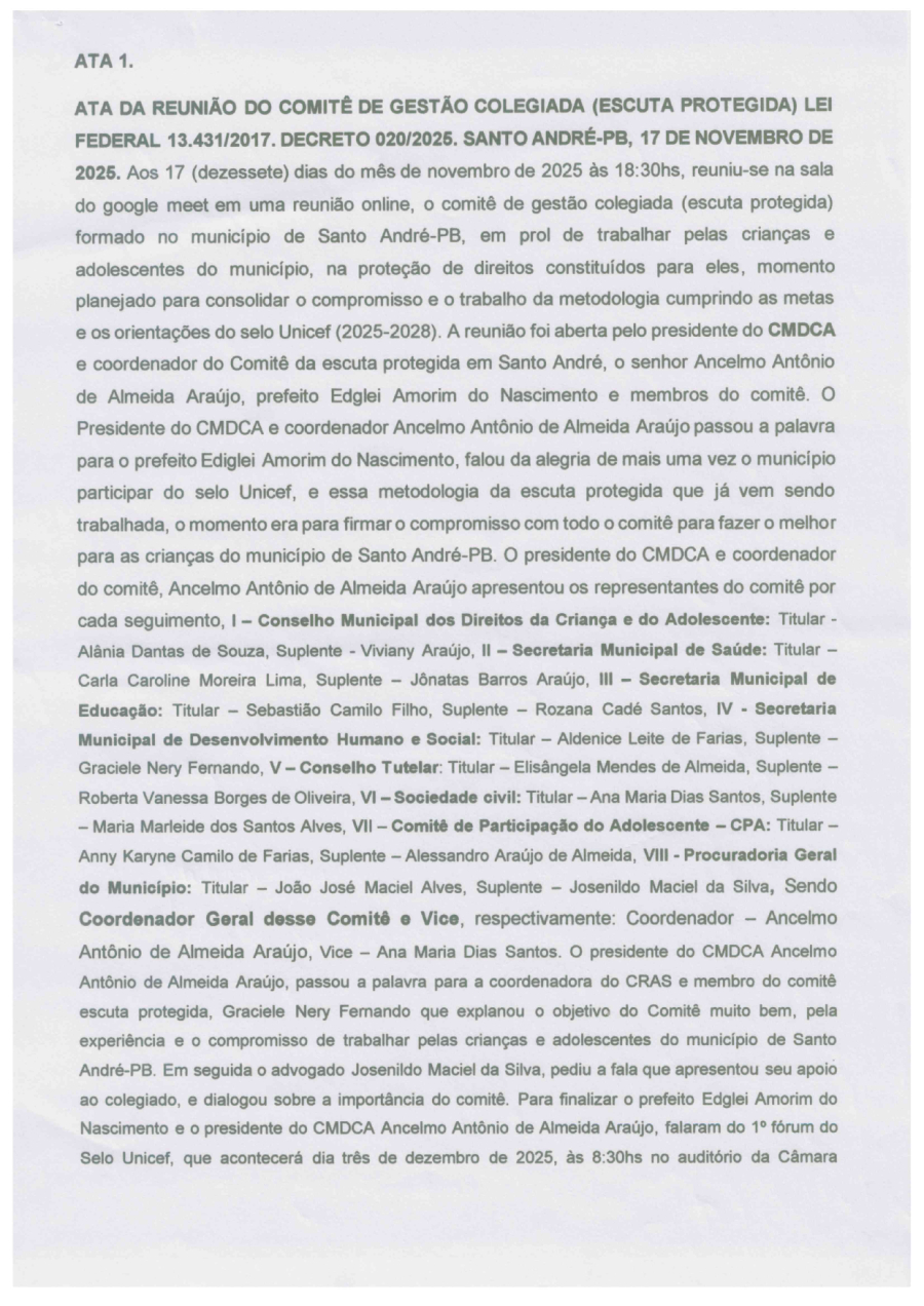 ATA DA REUNIÃO DO COMITÊ DE GESTÃO COLEGIADA (ESCUTA PROTEGIDA)